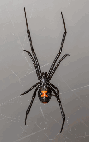 Adult black widow males are harmless and about half the female's size.                          (2.5 mm to 7.5 mm (0.125 to 0.25 inch) in length)