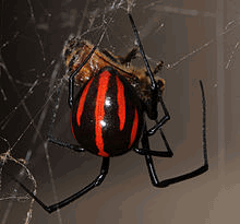- These small spiders have a very potent venom which contains the neurotoxin latrotoxin, which causes the condition latrodectism, both named after the genus, (Latrodectus).