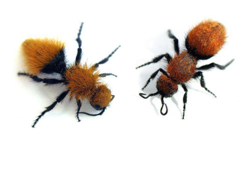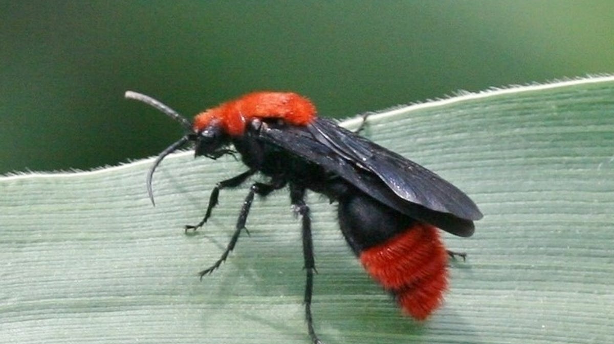As its name suggests, the velvet ant is covered by dense hair, giving it an appearance similar to that of an ant. This is not so true for males, since they have wings, which resemble more to wasps.